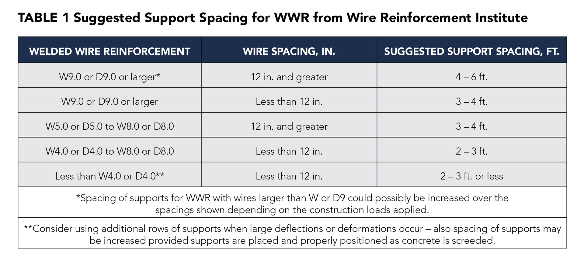 Welded wire fabric chart.